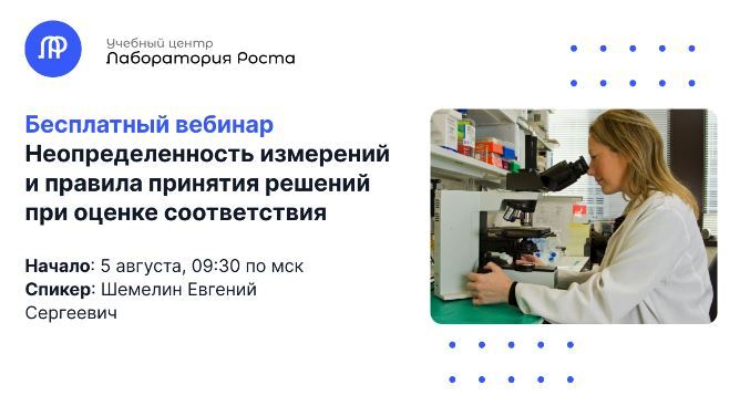05.08.2025 Руководитель ИЛ ООО «НПЦ РОСТ» провел обучающий вебинар на тему «Неопределенность измерений и правила принятия решений при оценке соответствия» Целью обучения было изучение основ концепции риск-ориентированного подхода при оценке соответствия продукции, озвучены существующие сложности и предложены решения по внедрению данного подхода в деятельность испытательных лабораторий.